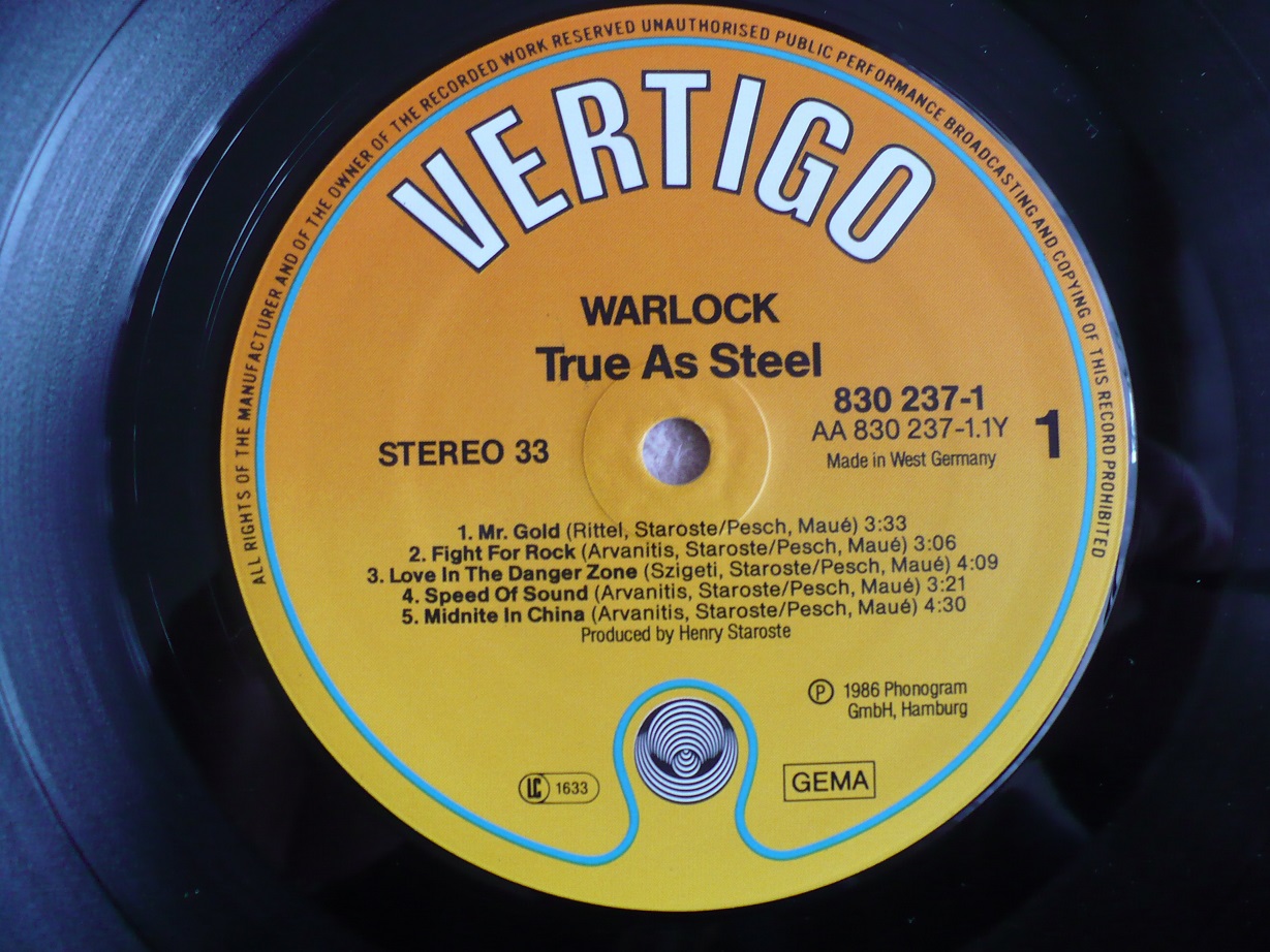 Nemecká veľmi úspešná speedmetalová skupina Warlock s speváčkou Doro Pesch a ich úspešný album s názvom True As Steel - 1.vydanie 1986 Vertigo made in Germany